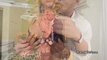 A sexy blonde tgirl has a thing for black cock.