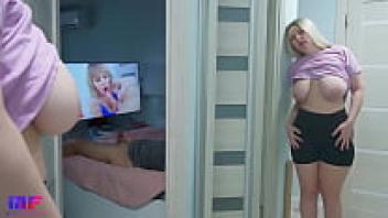 Part 4: Stepdad is spied on by a stepdaughter with large tits.