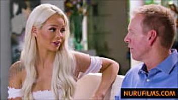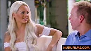 After a massage, the babysitter sucks a massive cock.