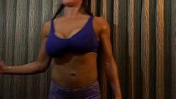 Lisa Cross Clit Pump, a professional bodybuilder, in the restroom