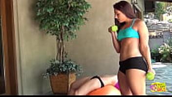 The brunette hottie and blonde Lez rush inside to lick their holes instead of working out.