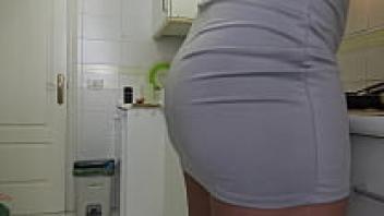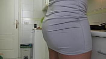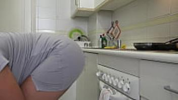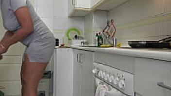 While her husband is at work, the stepson loves the amateur cuckold wife in her kitchen.