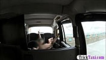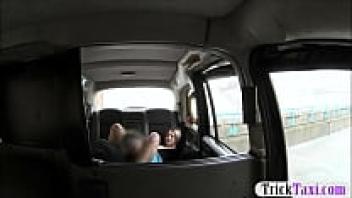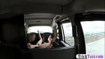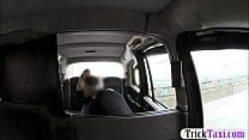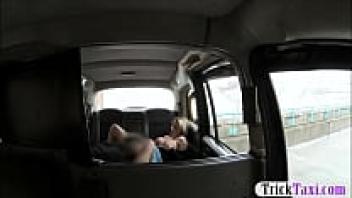 In the taxi, a busty blonde woman gets sucked off and ass-loved.