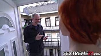 Small-titted nubile who is adored by an elderly man in a dog-like manner