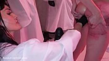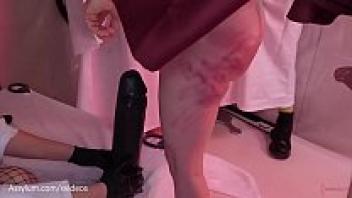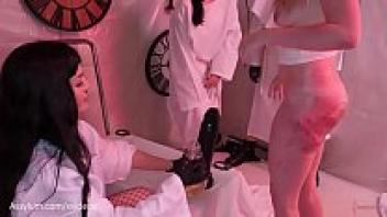 B. femdoms Nurse Holl and Goth Charlotte (b. anal, ATM, gangbang) use gigantic dildo to destroy the big ass blond submissive Rebel Rhyder.