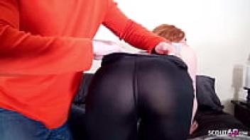 Ella, a ginger girl, loves wearing rough-clothed spandex leggings.