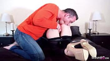 Sucking ancient balls and licking cock prior to doggystyle sex