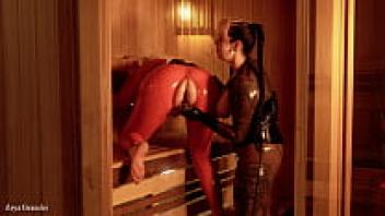Fetish Pin Up Arya Grander and model Dredda Dark are subservient pinup girls and brunette latex mistresses.