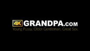 Vigourous grandfather ploughed a slender young beauty with passion.