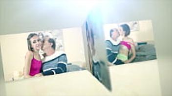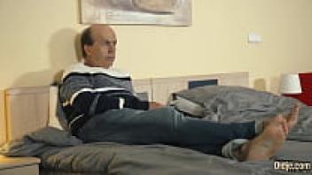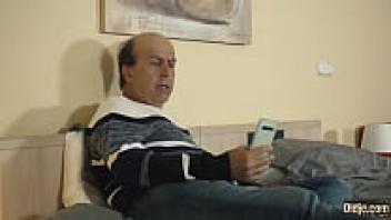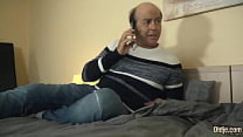 A naughty grandfather shows a lot of affection for a gorgeous brunette.