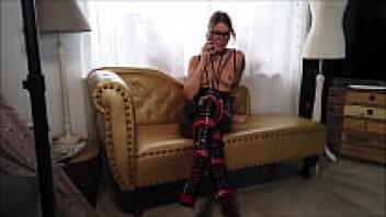 While a friend listens on the phone, loved in a latex suit