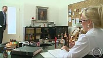 Fortunately, she is not alone in the office as Marinna Montana spreads her legs.