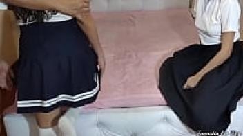 When their perverted stepdad is not home, innocent stepdaughters are sexually educated by him.