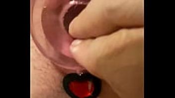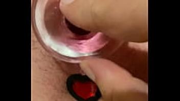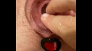 Orgasm following Creampie with a Butt Plug in the Shape of a Heart