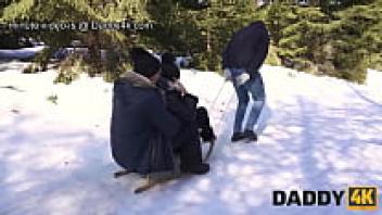The horny EBONY A cumshot is presented to a Latina brunette by her stepson, and it is placed directly in her mouth.