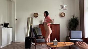 Before going to bed, the hot stepmother neglected to put on her underwear.