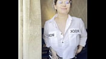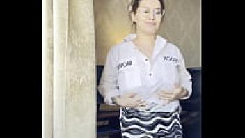 Titsjob dildo and gorgeous, blonde, natural large tits in pantyhose