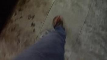The BBC features a curvy blonde beauty with large, naturally sagging tits wearing nylon underwear.