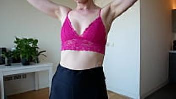 2230Te: French Amateur, Leather Upskirt, Stockings, High Heels, Rimming, Deepthroat, Cumshot, Pink Corset, Red Satin Tight Dress, Satin Lingerie Outfit (Satin White Thong)