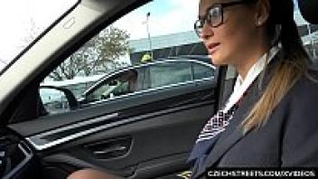 Love in a police car in public, tattooed babe