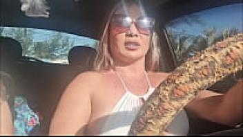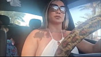 Naughty Bia flaunting her breasts and pussy in public.