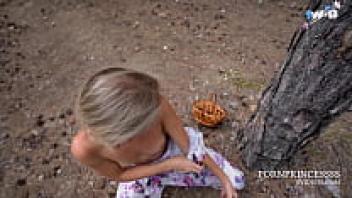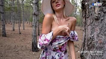 In the forest, hot blondes engage in outdoor public sex.
