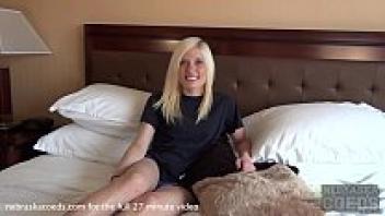 A really attractive and slender blonde records her first hotel video.