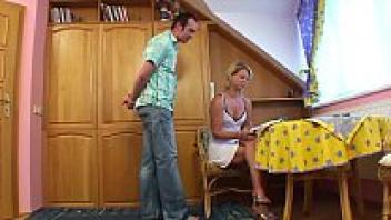 A gorgeous, blonde mother fulfils her stepson's desire for sex.
