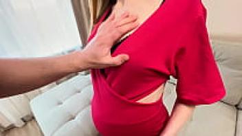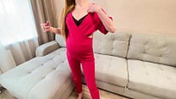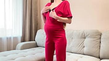 Redhead Stepmom, who is nine months pregnant, best sucks and rides a cock twice.
