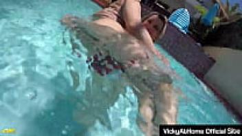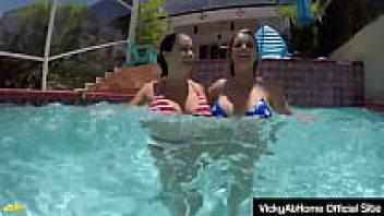 At the pool, bikini cougars Rachel Storms and Vicky Vette are seen cutting!