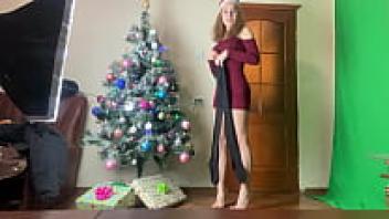 Stacy in French-cut black panties decorating the tree