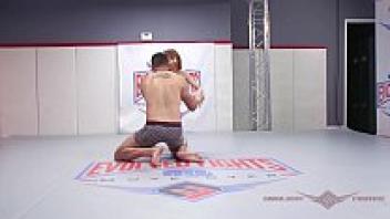 In the nude wrestling match, Alexa Nova puts on a femdom strapon and defeats the loser.