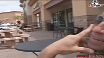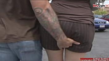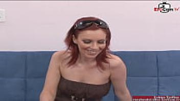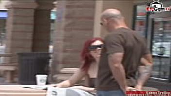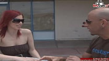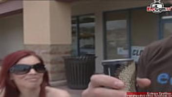 At the street, a red-haired beauty with natural tits is picked up.