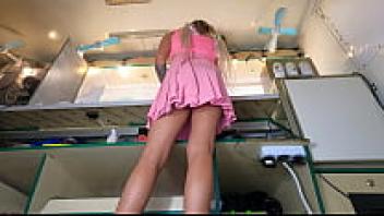 voyer camera upskirt performed by a seductively blonde step sister at work, part 17