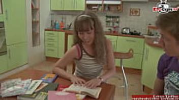 Anorexic, lanky, and long-legged Russian teenager lounging on a couch and enjoying hard anal