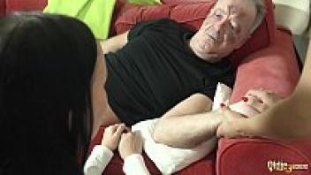 After robbing grandfather of his money, the teenagers proceed to suck his pulsating dick.