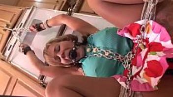 Maria Old, a hot cougar, is swaying her enormous, sagging tits while wearing garter and black stockings.