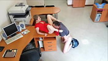 On the office table, the boss adores her secretary till he pours his sperm and urine into her ravenous mouth, which she then swallows.