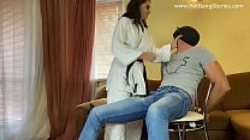 In the cfnm femdom handjob homemade scene, a hot mistress wants to play with a nude man.