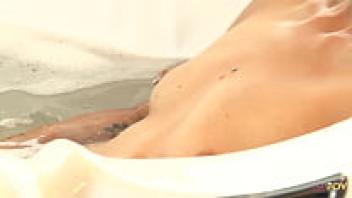 In a jacuzzi, this stunning Asian lesbian with pierced nipples and full lips receives royal sex treatment.