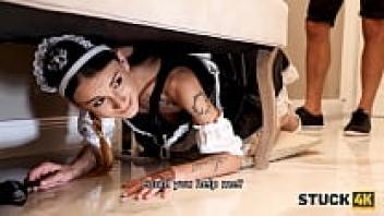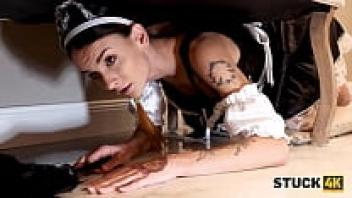 This is STUCK4K. Sexy maid is in a bind and requires assistance from her lover, who is hung over.