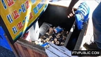 A hilarious public teen group street sex orgy gangbang in open daylight