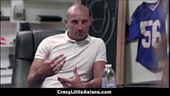 Big Dick, the gymnastics coach, like to orgasm the virgin young Asian teen gymnast.