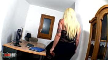 The ugly, plump, blonde boss of the garage loves her staff and eats his sperm.