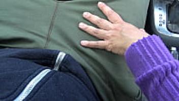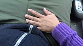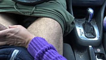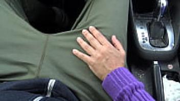In his car, the nasty stepmother touched her stepson's enormous cock.