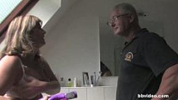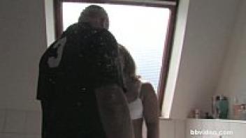 BbVideo.com In the bathroom, a chubby German MILF is in love.