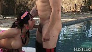 Pool Boy Bangs Busty Ebony Newcomer in an Ultra Exotic Love