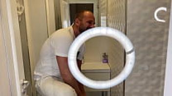 My gorgeous stepmother is spotted looking sexy while cleaning in shorts and showing off her enormous ass.