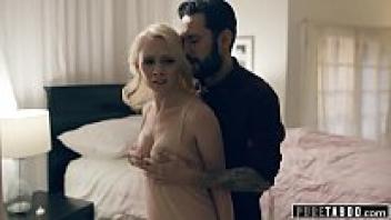 A blonde babysitter joins the husband and wife in a threesome.