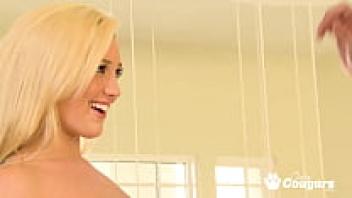 mature, curvy blonde Zoey Tyler has her shaved pussy crammed after sucking cock.